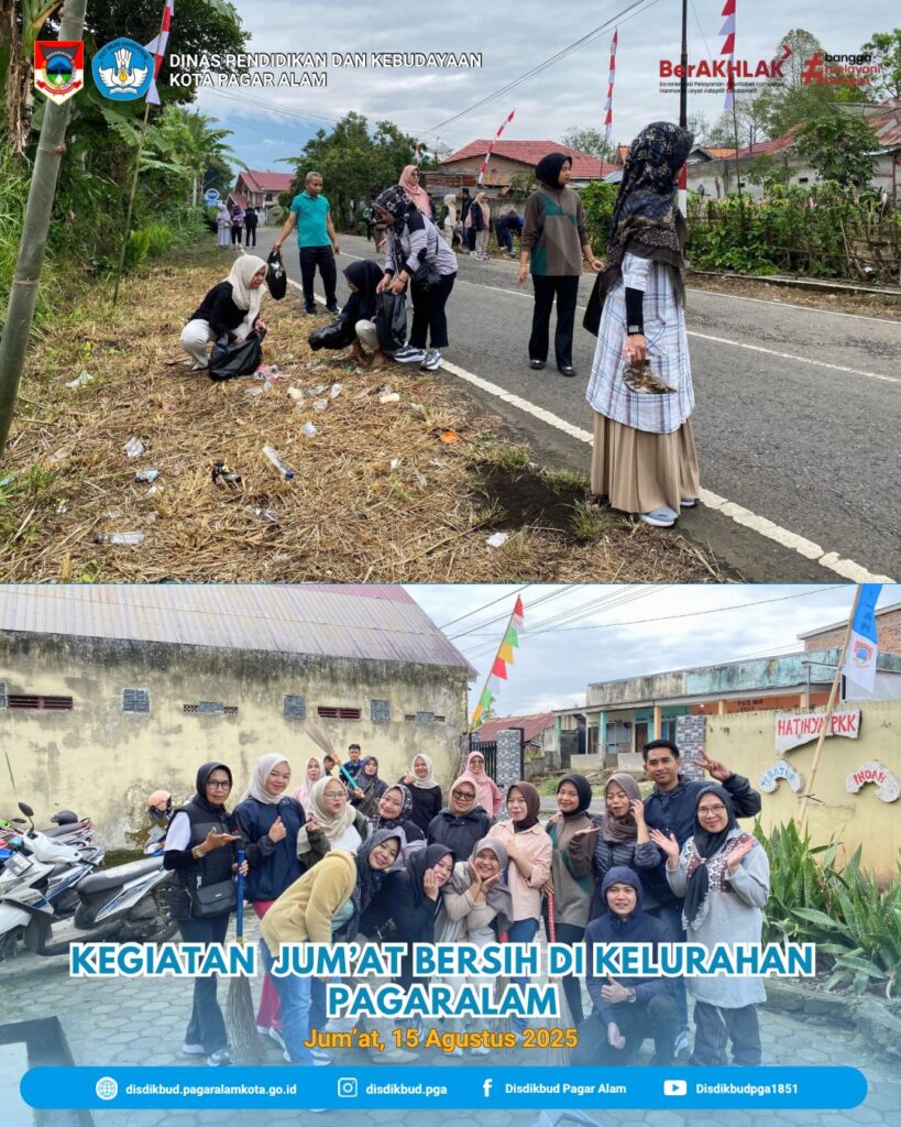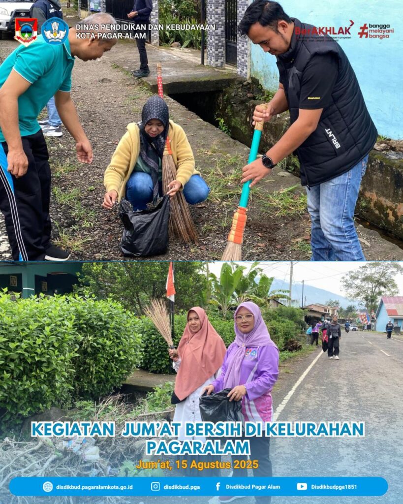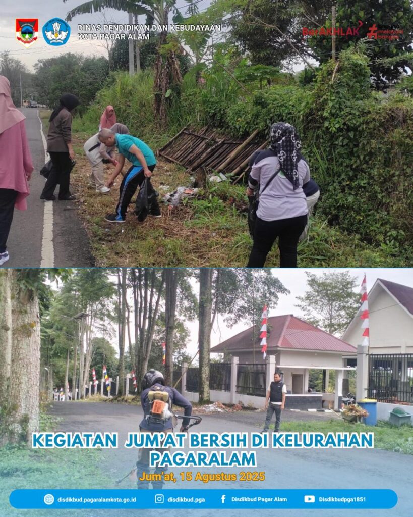 Pada Jumat, 15 Agustus 2025, Dinas Pendidikan dan Kebudayaan Kota Pagar Alam bersama Kelurahan Pagar Alam bergotong royong menjaga kebersihan lingkungan.