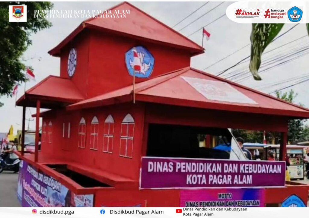 Dinas Pendidikan dan Kebudayaan Kota Pagaralam ikut memeriahkan HUT RI ke-80 dengan menampilkan Miniatur SMA Taruna Nusantara — simbol semangat pendidikan, kedisiplinan, dan cinta Tanah Air.