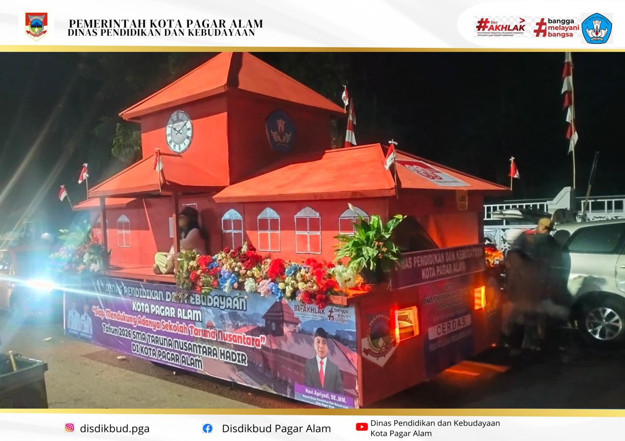 Dinas Pendidikan dan Kebudayaan Kota Pagaralam ikut memeriahkan HUT RI ke-80 dengan menampilkan Miniatur SMA Taruna Nusantara — simbol semangat pendidikan, kedisiplinan, dan cinta Tanah Air.
