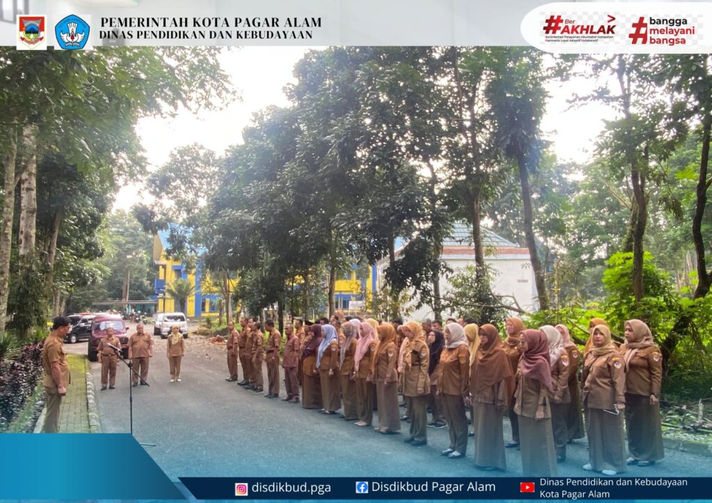 Dinas Pendidikan dan Kebudayaan Kota Pagar Alam melaksanakan apel rutin Senin pagi dipimpin oleh petugas dari Bidang PAUD PNF.