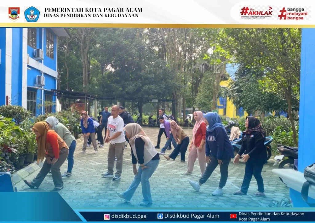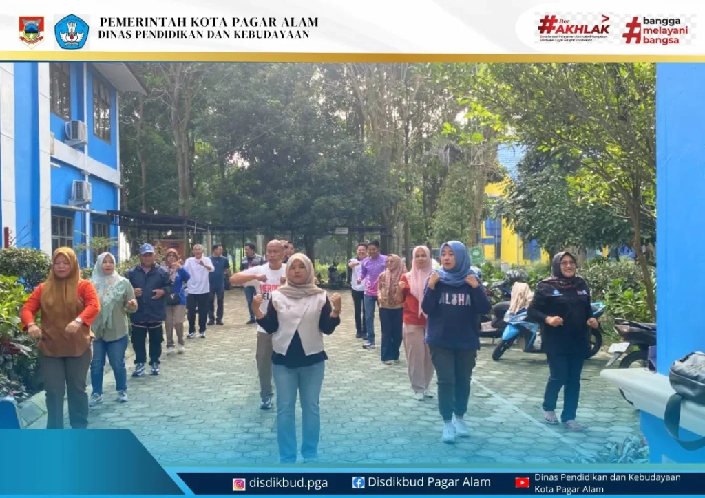 Jum’at, 10 Oktober 2025 Dinas Pendidikan dan Kebudayaan Kota Pagar Alam melaksanakan senam pagi bersama sebagai bentuk upaya menjaga kebugaran, mempererat kekompakan, dan menumbuhkan semangat kerja positif di lingkungan Dinas Pendidikan dan Kebudayaan Kota Pagar Alam.