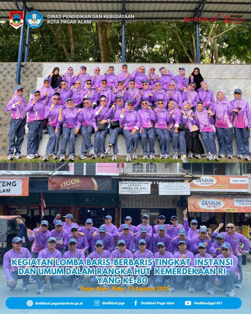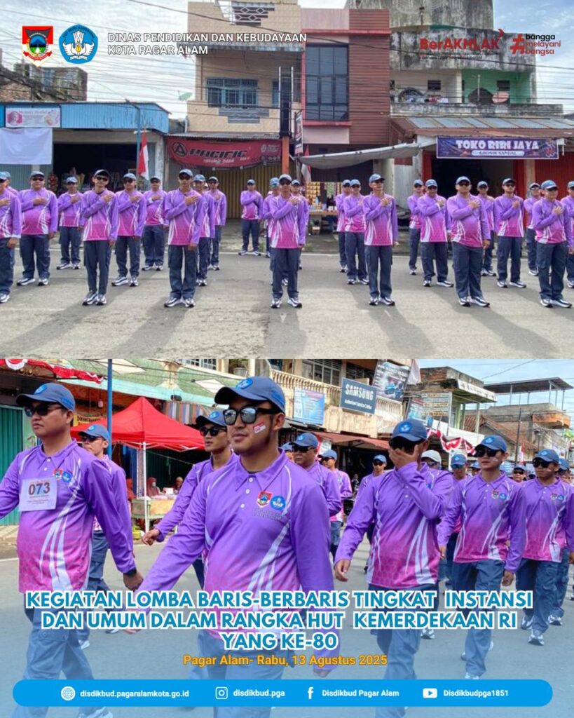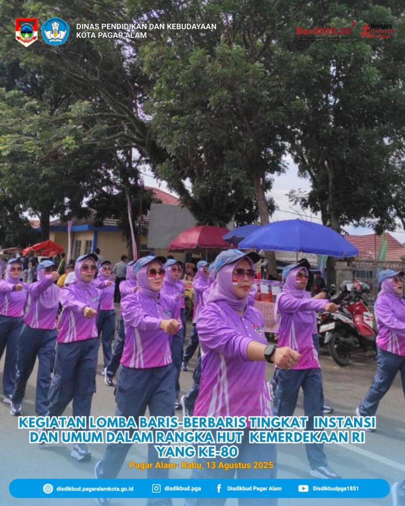Rabu, 13 Agustus 2025 Dinas Pendidikan dan Kebudayaan Kota Pagar Alam mengikuti kegiatan lomba baris-berbaris tingkat instansi dan umum dalam rangka menyambut Hari Kemerdekaan Republik Indonesia yang Ke-80. Mari kita sambut hari kemerdekaan RI ini dengan semangat juang yang tinggi, bersatu dan bekerja dengan hati. #pagaralamserame #DinasPendidikanPagarAlam #DISDIKBUD2025