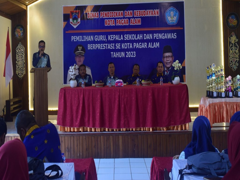 Panitia dan Tim Penilai/Penguji Pemilihan, Guru Kepala Sekolah dan Pengawas Berprestasi tingkat Sekolah Dasar (SD) Kota Pagar Alam tahun 2023 bertugas menilai, menguji menyeleksi guru berprestasi Kota Pagar Alam Tahun 2023 sesuai dengan pembidangan tugas lebih lanjut Pelaksanaan Kegiatan pada tanggal 13-14 Juni 2023 Hari Selasa s/d Rabu, terdiri 100 peserta kepala sekolah dan Guru.
