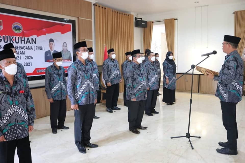 17 Pengurus Forum Kerukunan Umat Beragama (FKUB) Kota Pagar Alam Periode 2021-2026, secara resmi dikukuhkan oleh Walikota Pagar Alam Alpian Maskoni, bertempat di Rumah Dinas Walikota, Senin (25/10/2021).