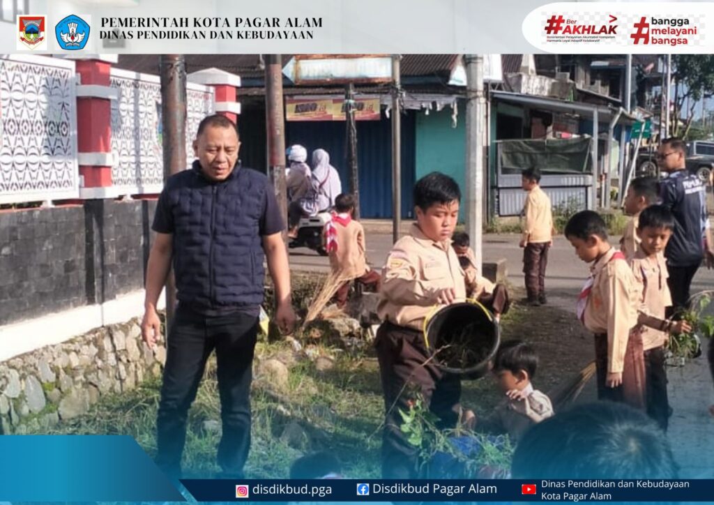 Kepala Dinas Pendidikan dan Kebudayaan Kota Pagar Alam dan tim monitoring kebersihan lingkungan sekolah mengikuti kegiatan bersih lingkungan bersama Kepala Sekolah, Guru dan Siswa di SDN 3, SDN 49, SDN 61 dan SMPN 2 Kota Pagar Alam.