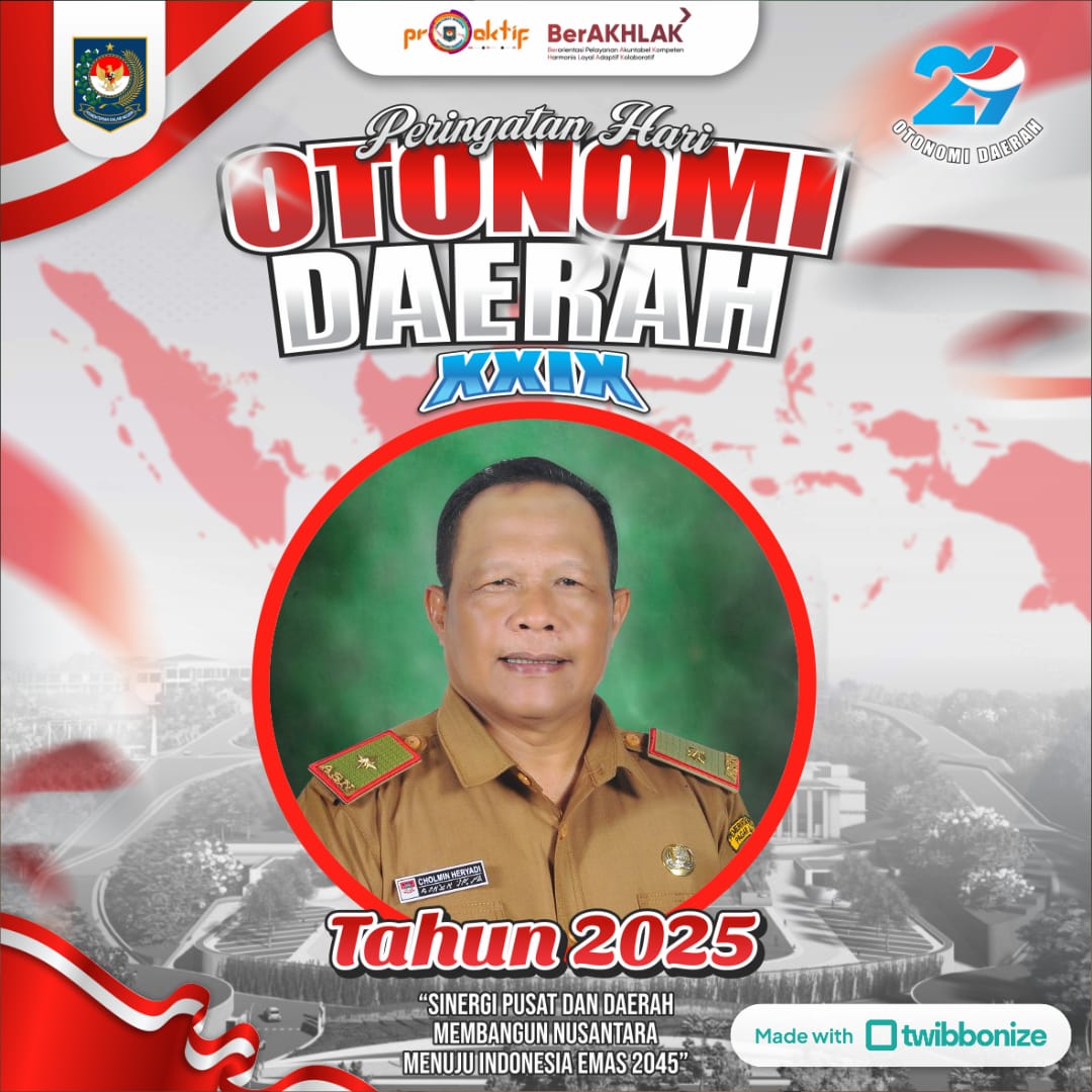 Dinas Pendidikan dan Kebudayaan Kota Pagar Alam mengucapkan Selamat Hari Otonomi Daerah ke-29 tahun 2025, Sinergi Pusat dan Daerah Membangun Nusantara Menuju Indonesia Emas 2045